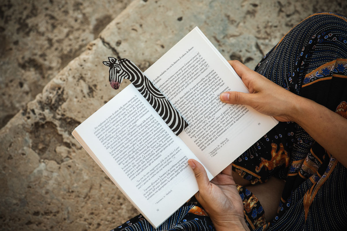 Segnalibro in cuoio a forma di animali della savana e dipinti a mano.